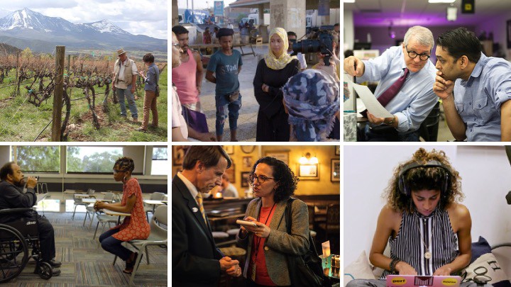 Photo at top of page: Local journalists at work from High Country News, Groundtruth Project, Texas Tribune, Public Source, CALMatters, Marshall Project. All photos courtesy of the Institute for Nonprofit News.