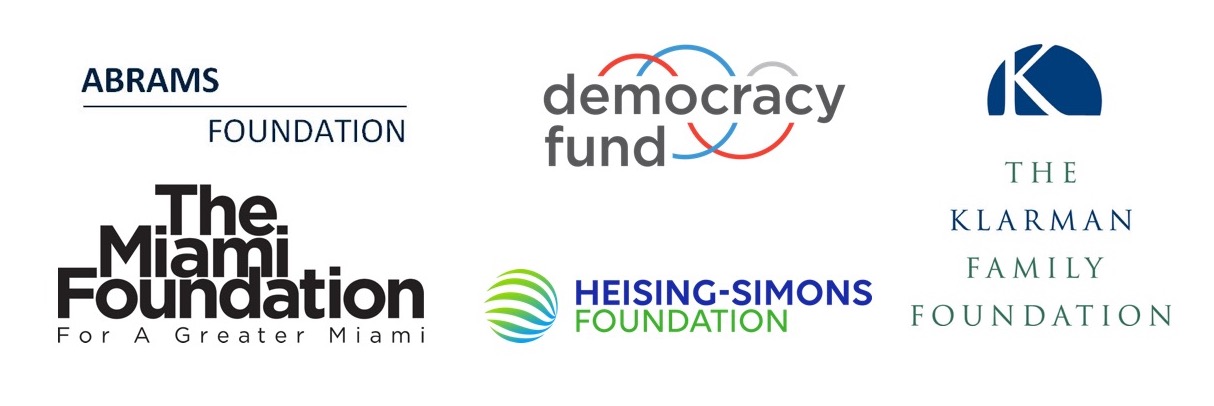 The Fund is currently supported by Democracy Fund, The Klarman Family Foundation, and Solidarity Giving. The Miami Foundation serves as fiscal sponsor for the Fund. Past partners of the Fund include The Abrams Foundation and Heising-Simons Foundation.